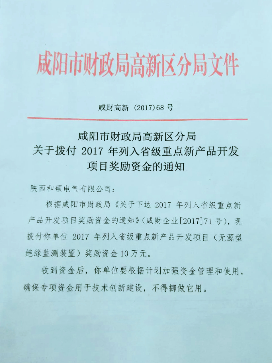 2019-08-16公司被评为咸阳市智能电网与大数据